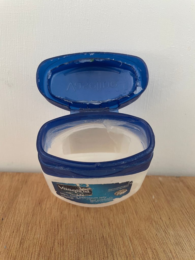 I think about this rhetorical question, searching around for answers, and all I am faced with is my now-empty, lifeless Vaseline jar, which, with it’s lid, open from last use seems to mock me, as if to say,